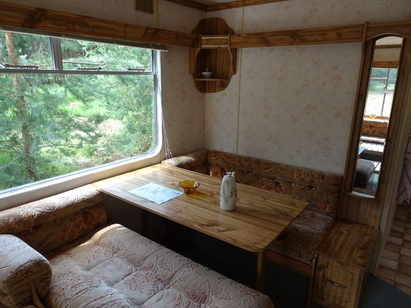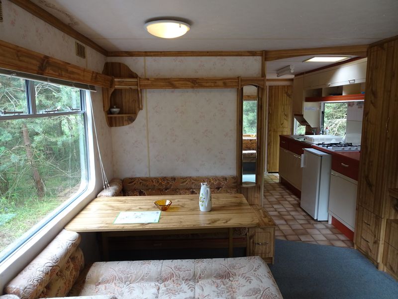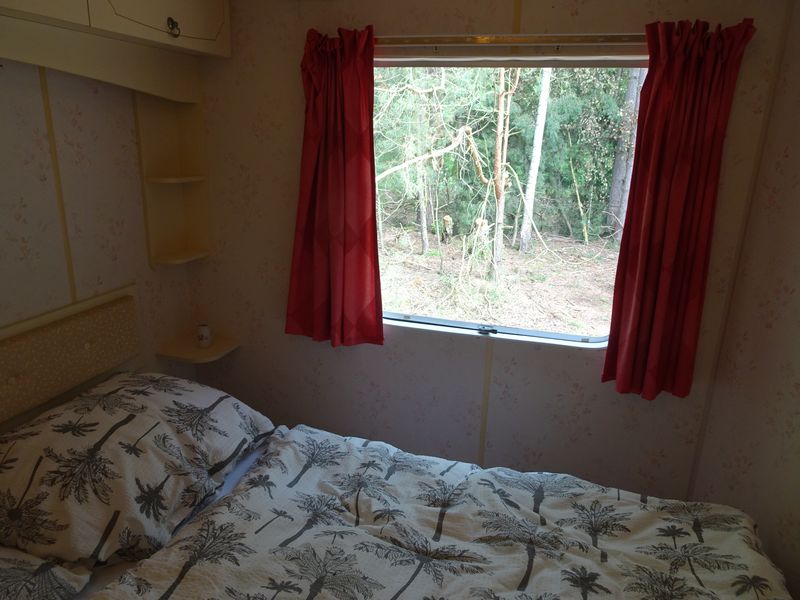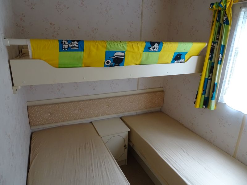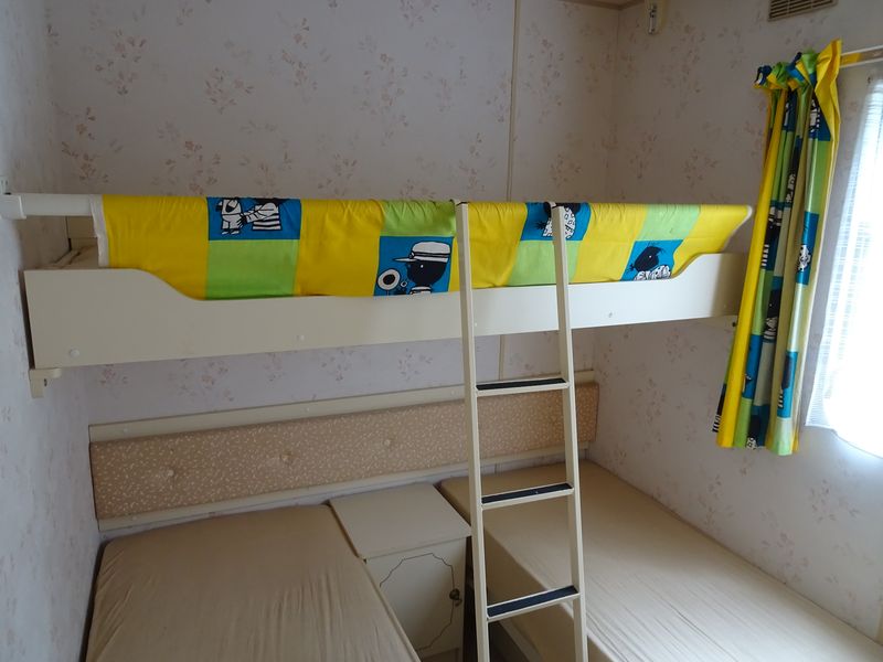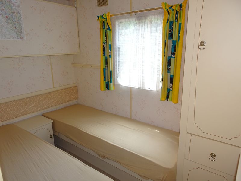 Ložnice a pokoje: První ložnice obsahuje manželskou postel, nezbytnou skříň a noční stolky. Druhá ložnice (vhodná pro děti) se nachází naproti kuchyni a obsahuje dvě samostatná lůžka (180x60 cm) a menší patrové lůžko vhodné spíše pro dítě (délka 157 cm). Toto lůžko je možné složit. V obývacím pokoji je velká sedací souprava a lavice se stolem, která se dá rovněž využít jako lůžko. Obě ložnice i obývací pokoj mají okna se sítí proti hmyzu, což se v naší lokalitě může hodit.