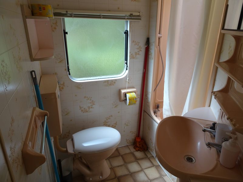 Sociální zařízení: Koupelna obsahuje umyvadlo, sprchový kout s teplou vodou ohřívanou plynovou karmou a WC.