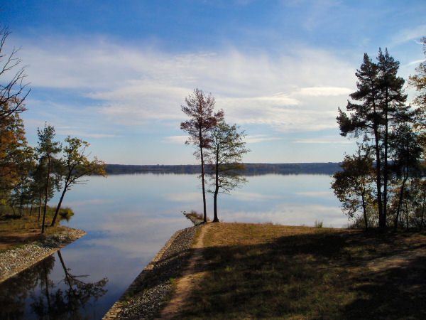 Na mapce si nelze nevšimnout, jak je Vlkov ze severu přímo obklopen 5 pískovnami, které vznikly letech 1952 až 1986 těžbou štěrkopísku po obou stranách řeky. Profiltrováním vody vznikla nádherná jezera s čistou vodou, která přímo vybízí k vykoupání (jmenují se Jezero Veselí, Vlkovská pískovna, Veselí I, Jezero Horusice a Jezero Horusice I). Z jihu a východu narazíte zase na všudypřítomné borovicové lesy a na rybníky. Právě ve Vlkově začíná turistická stezka (pro pěší i pro cyklisty), která prochází kolem rybníků, které se honosí názvy jako Krajina, Naděje, Láska, Víra, Dobrá vůle či Potěšil. Fotografie rybníků z Nadějské rybníční soustavy, které se sem nevešly, naleznete v naší externí galerii. Po (cyklo)stezce se dostanete až k největšímu českému rybníku - Rožmberk u - o rozloze 720 ha. Cestou můžete během jednoho dopoledne napočítat na šestatřicet rybníků... Nelze se proto divit, že Vlkov je součástí chráněné krajinné oblasti (CHKO) Třeboňsko.